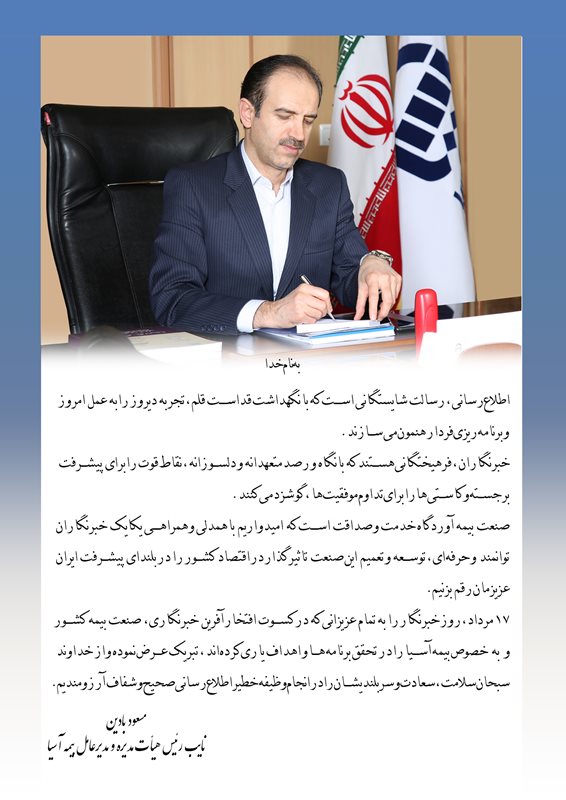 پیام تبریک مدیر عامل بیمه آسیا به مناسبت روز خبرنگار