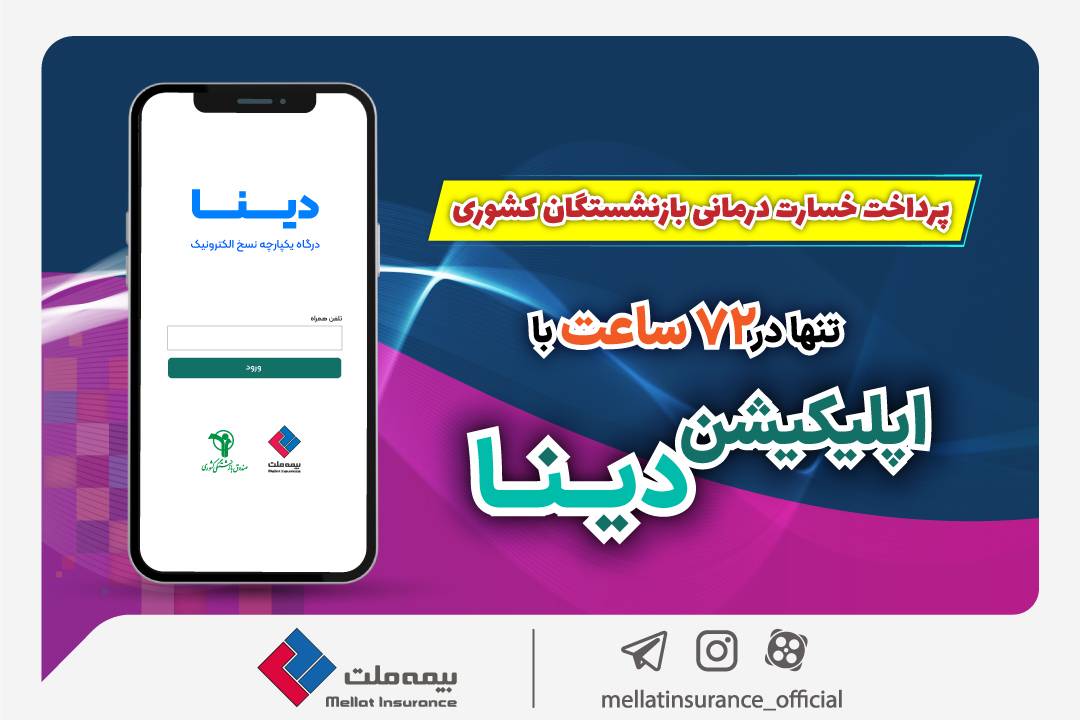 پرداخت خسارت درمانی بازنشستگان صندوق بازنشستگی کشوری توسط بیمه ملت تنها در ۷۲ ساعت با اپلیکیشن دینا