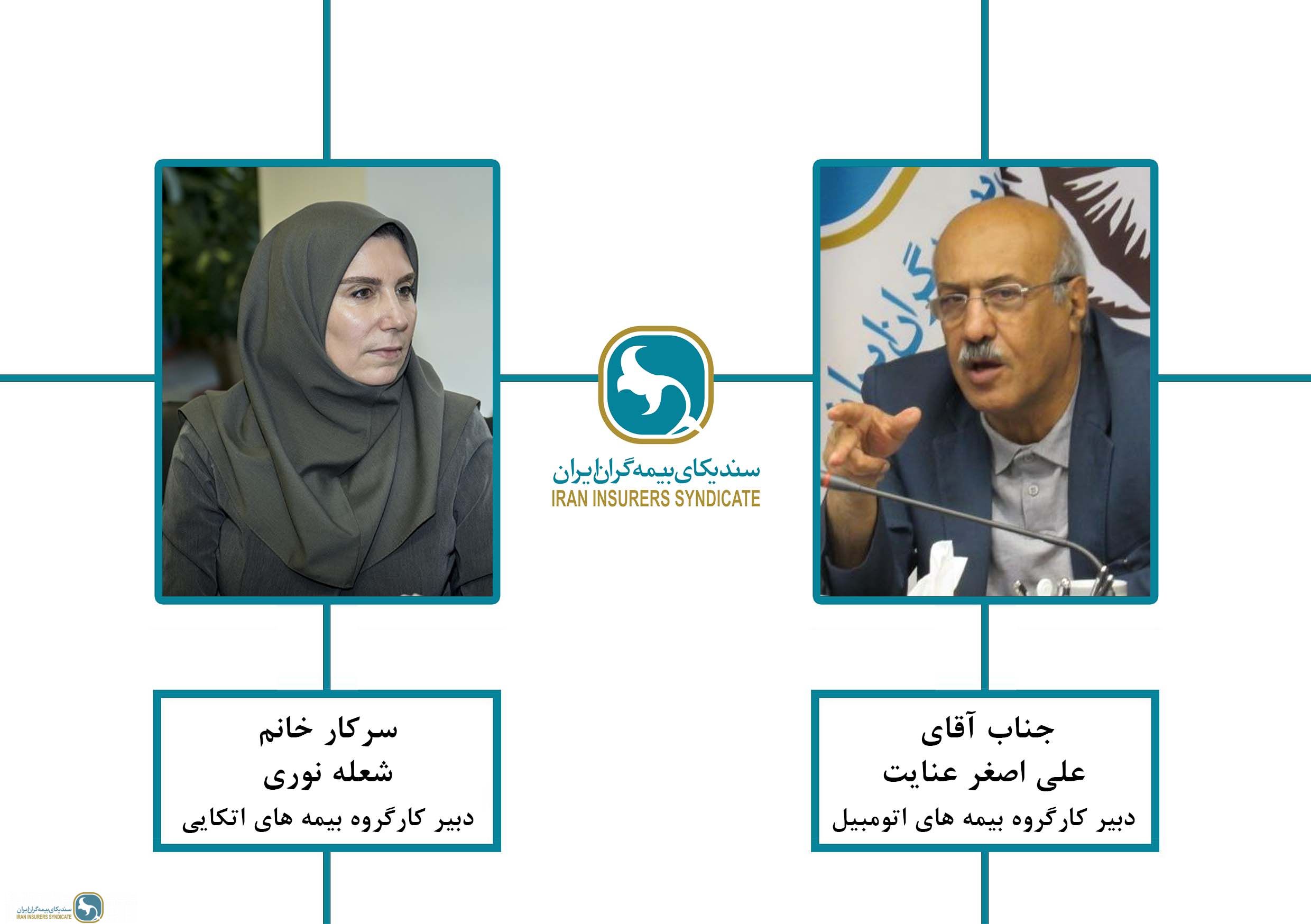 انتخاب مجدد آقای علی اصغر عنایت و خانم شعله نوری بعنوان دبیران کارگروه های بیمه های اتومبیل و بیمه های اتکایی