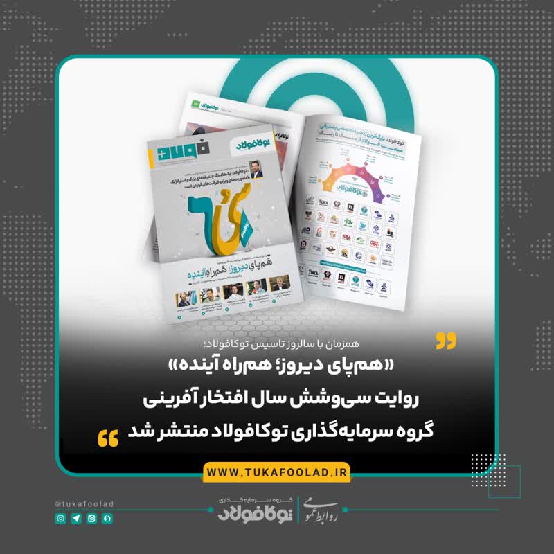 در این ویژهنامه چکیدهی فعالیت، دیدگاه مدیرعامل، توانمندیها و فکتهای آماری هر یک از شرکتهای گروه سرمایهگذاری توکافولاد مورد بررسی قرار گرفته است. این ویژهنامه در ۸۰صفحه نشر یافته است.