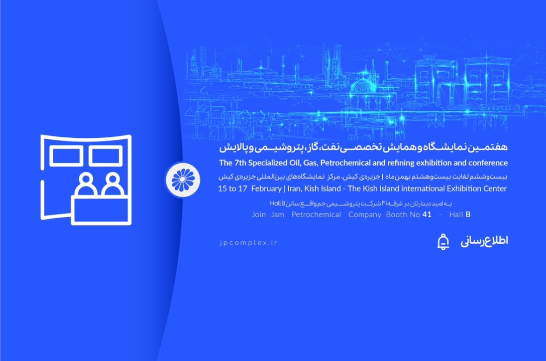 شرکت پتروشیمی جم در مرکز نمایشگاه های بین المللی جزیره کیش، در غرفه 41 سالن B از ساعت 17:00 الی 22:00 پذیرای متخصصان و مدعوین گرامی است.